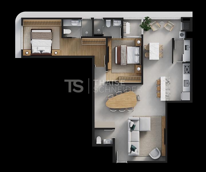 2 dormitórios (2 suítes)